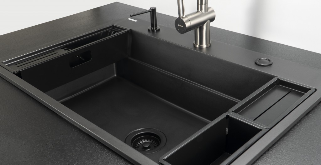 Drez je vyrobený z kvalitného granitu obohateného o ióny striebra, čo mu prepožičiava antiseptické vlastnosti. Matný povrch v odtieni Nero dodáva kuchyni moderný a sofistikovaný vzhľad. Materiál zaisťuje vysokú odolnosť proti nárazom, vysokým teplotám až do 250 ° C, zmenám farby a tepelným šokom. Hydrofóbne vlastnosti povrchu odpudzujú vodu, čo uľahčuje čistenie a udržuje drez hygienicky čistý.