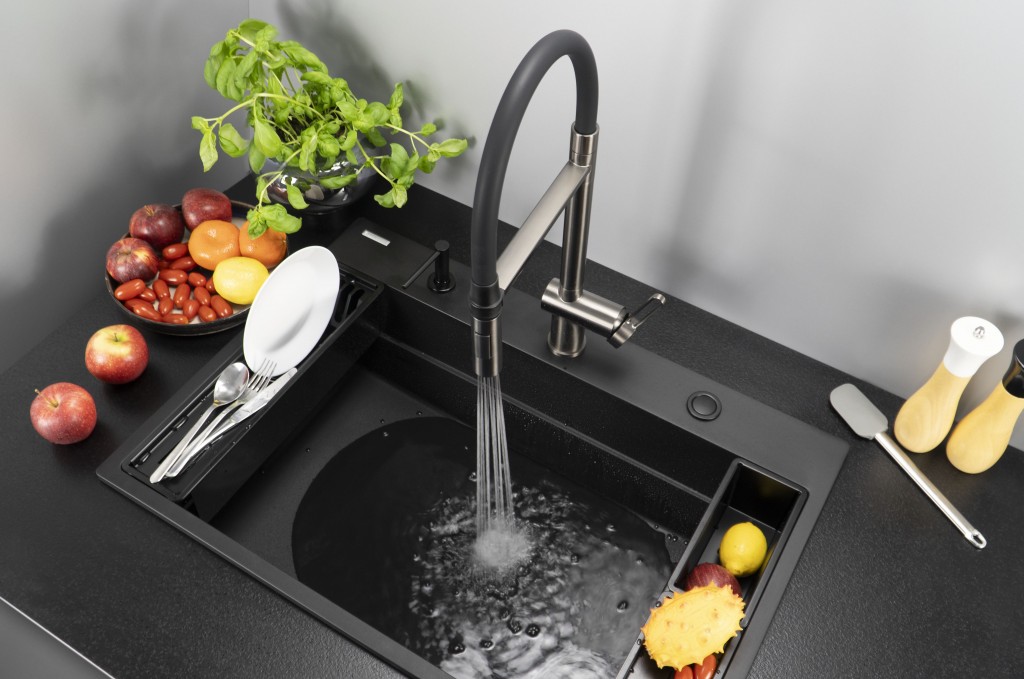 Drez je navrhnutý pre podomietkovú montáž, čo zaisťuje hladký prechod medzi pracovnou doskou a drezom, a tým aj ľahšiu údržbu a elegantný vzhľad kuchyne.