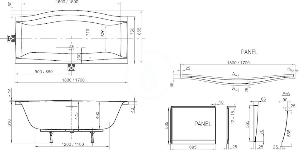 - panely a podpora vany nejsou součástí balení (viz. související výrobky)