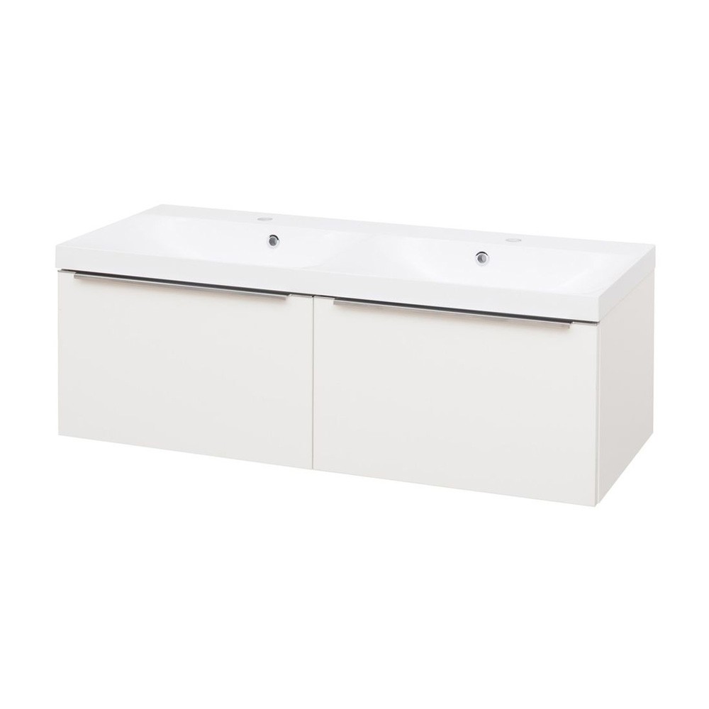 Mereo Mailo, kúpeľňová skrinka s umývadlom z liateho mramoru 121 cm, biela, chróm madlo (CN518M)