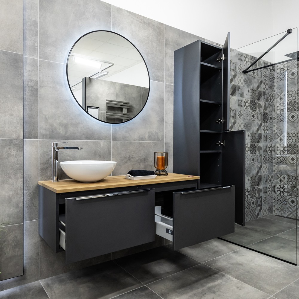 Jednoduchosť, efektívnosť, elegancia. To sú hlavné spoločné menovateľa kúpeľňového nábytku, ktorý ozdobí každú kúpeľňu. Skrinka obsahuje 2 dvierka za ktorými sa ukrývajú 4 police. Vyberať môžete z 3 farebných odtieňov: lesklá biela, dub Riviera a antracit. Otočením skrinky o 180 stupňov si určujete variantu otvárania (ľavú alebo pravú). Skrinka sa dodáva v zloženom stave.