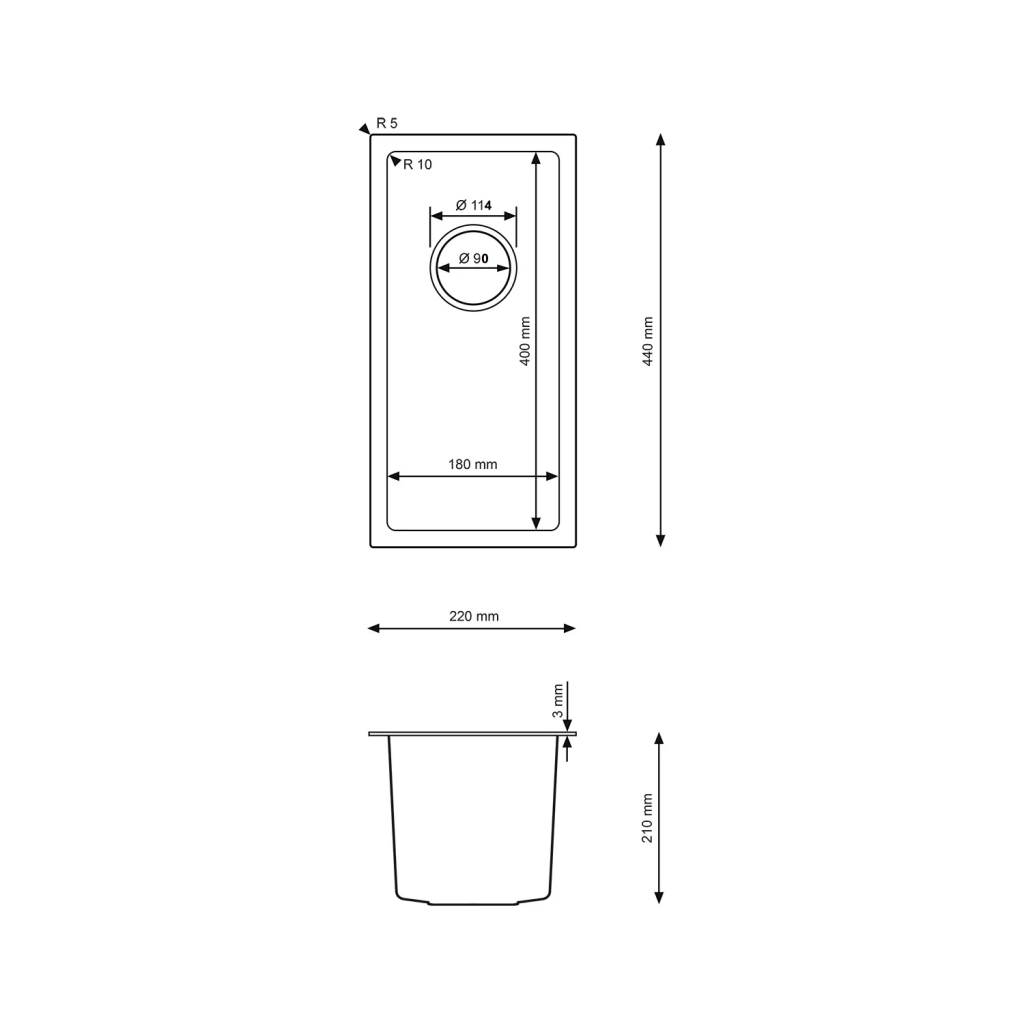 Kuchynský drez z nerezovej ocele 22 x 44 so sifónom je praktickým a štýlovým riešením do každej modernej kuchyne. Je vyrobený z kvalitnej INOX ocele s kartáčovaným saténovým povrchom, ktorý je odolný, ľahko sa udržuje a pôsobí elegantne.
