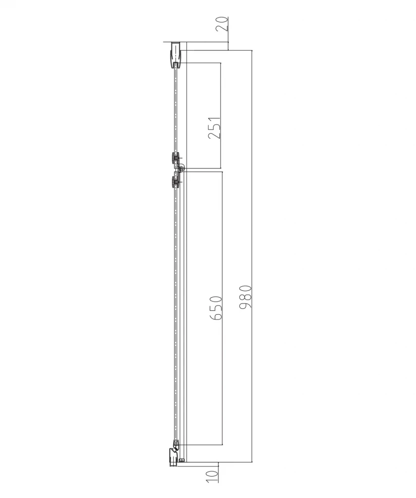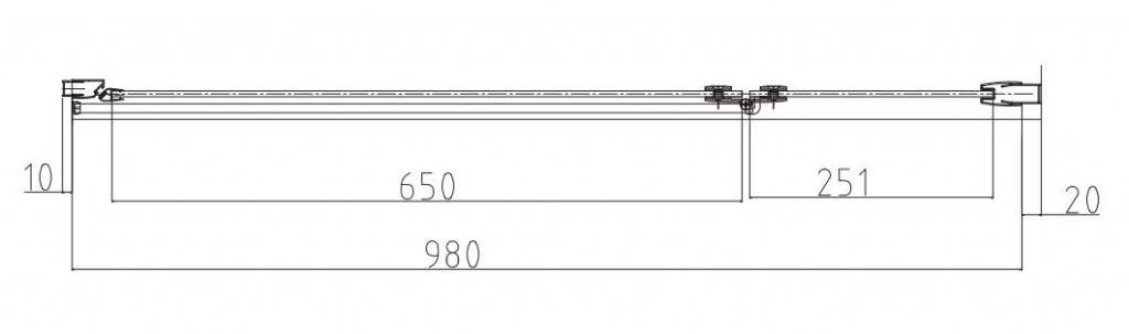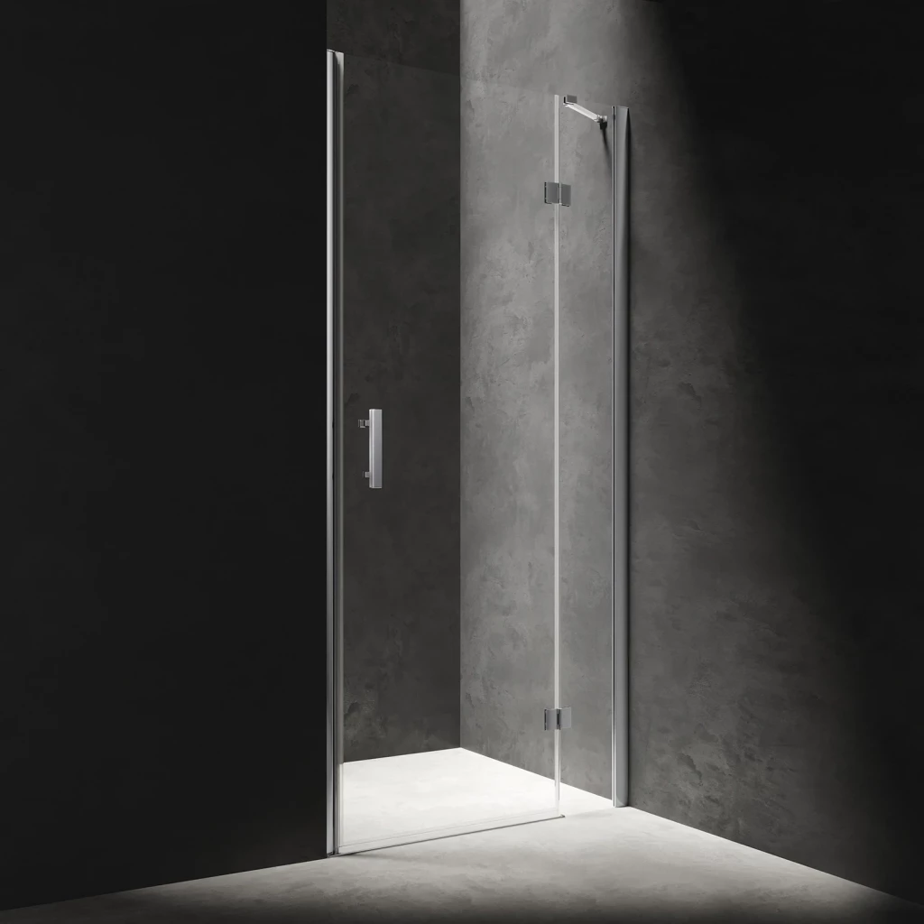 Sprchové výklopné dvere MANHATTAN 100 s pevným poľom šírky 251 mm a jedno krídlovými dverami 650 mm otvárateľnými iba von, sú určené na inštaláciu do niky /medzi dve steny/. Ako výplň je použité tvrdené bezpečnostné transparentné sklo o sile 6 mm a je doplnené chrómovanými profilmi, bezpečnostnou vzperou, mosadznými pántami a pochrómovaným madlom.