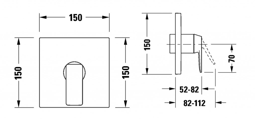 - hranatá krycia rozeta, 150 x 150 mm