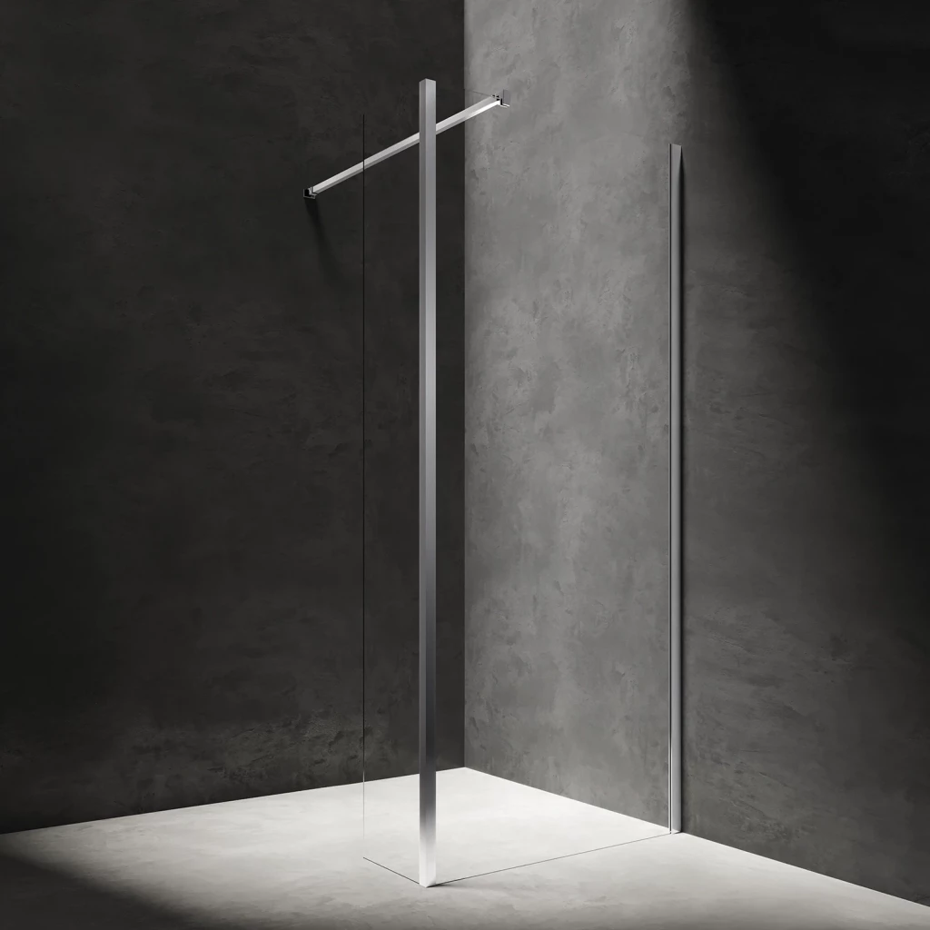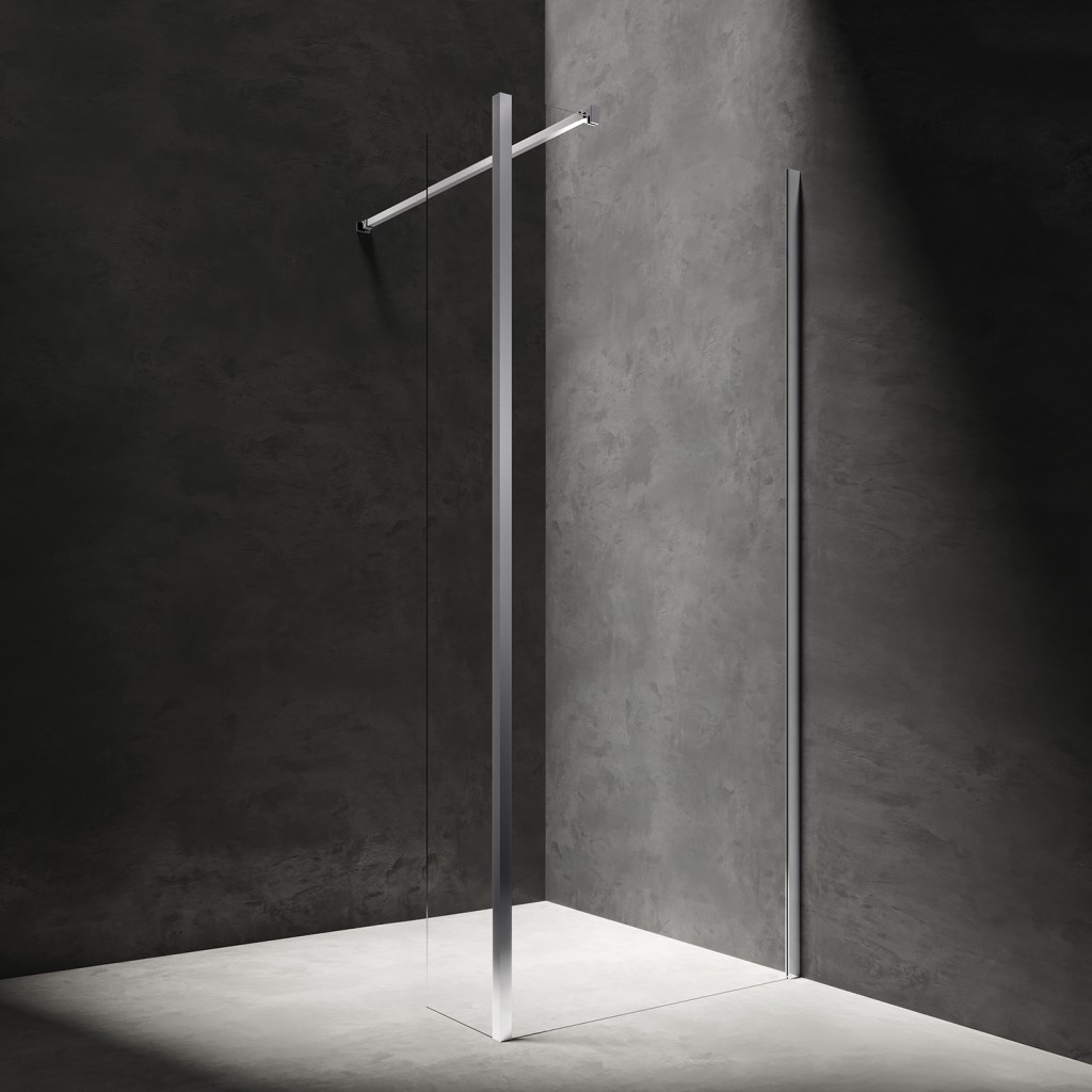 WALK-IN otvorený sprchovací kút bez dverí s praktickým a moderným spôsobom, ako vytvoriť vašu kúpeľňu vzdušnú aj v menších priestoroch a je možné použiť ako bezbariérové. Sprchové zásteny MARINA s bočnou stenou od výrobcu OMNIRES so systémom DUAL MOUNT je možné dvere kabíny inštalovať na pravú alebo ľavú stranu.