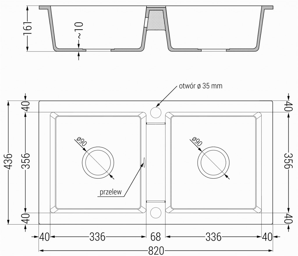 Priemer odtoku: ø90 mm