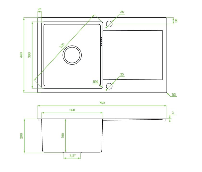 Minimalistické prevedenie s úzkymi rohmi nielen pôsobí esteticky, ale taktiež uľahčuje čistenie. Veľkorysá hĺbka a rozmery drezu umožňujú pohodlné umývanie aj objemnejšieho riadu vrátane plechov.