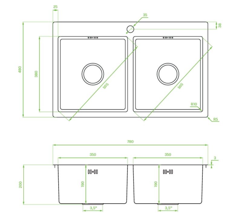 Charakteristickým prvkom radu Marmara je malý polomer rohov, ktorý nielen zvýrazňuje estetiku drezu, ale zároveň zaisťuje praktickosť pri údržbe. Priestranné, hlboké misy sú ideálne na umývanie veľkého riadu vrátane plechov na pečenie.