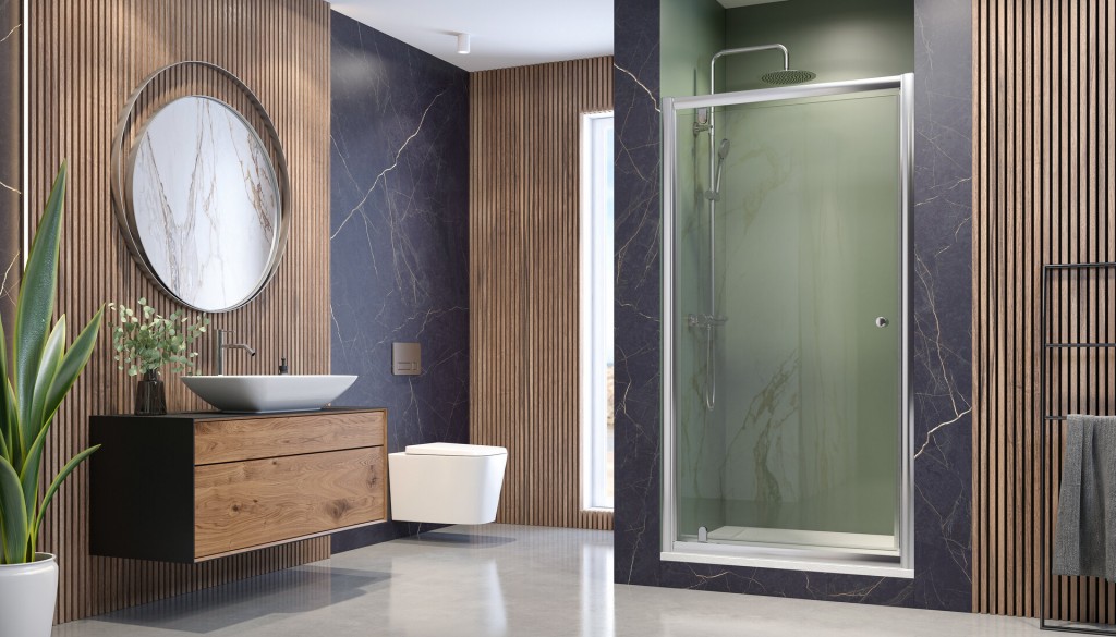 Sprchová zástena s jednokrídlovými dverami s pántmi a magnetickým uzatváraním