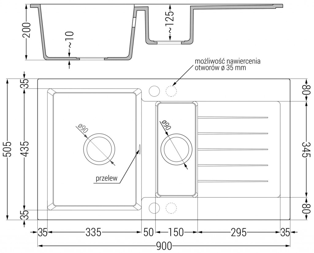 Priemer odtoku: ø90 mm