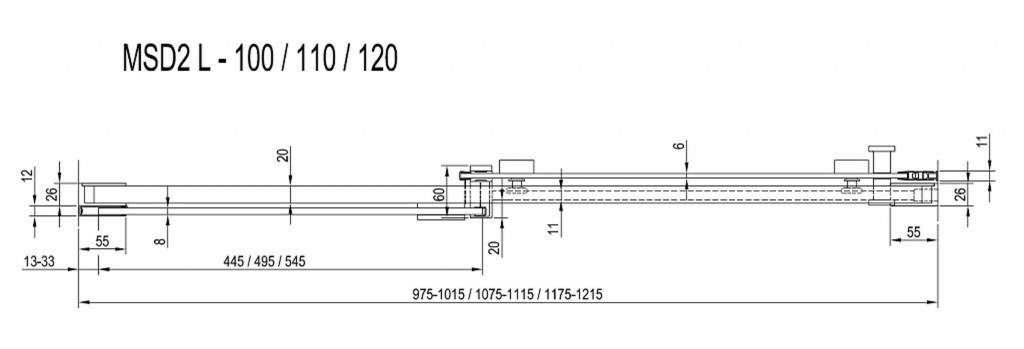 Sprchové dvere MSD2-100 L, posuvné inštalačné rozmery: 975-1015 mm výška: 1950 mm šírka vstupu: 414 mm materiál: číre bezpečnostné sklo 6/8 mm AntiCalc ® povrchová úprava skla prevedenie: ľavá varianta lesklé hliníkové profily madlá a spojovacie prv… (celý popis)