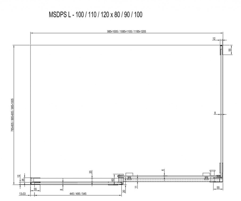 Sprchovací kút MSDPS-120/90 L, s posuvnými dverami