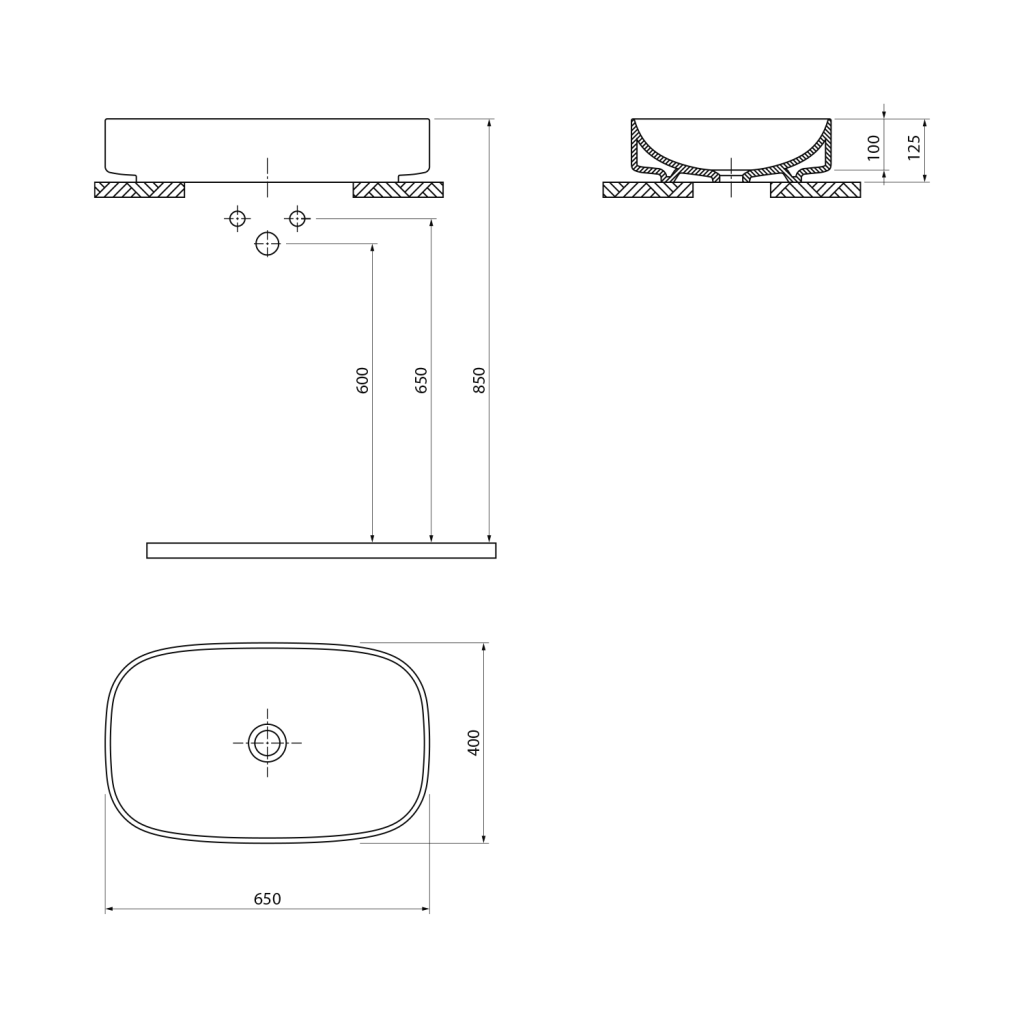 SAPHO - MATTEO keramické umývadlo na dosku 65x40cm, zelená mat (3064-128)