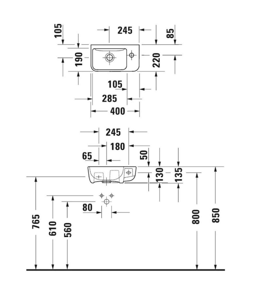 - s 1 otvorom pre umývadlovú batériu vpravo