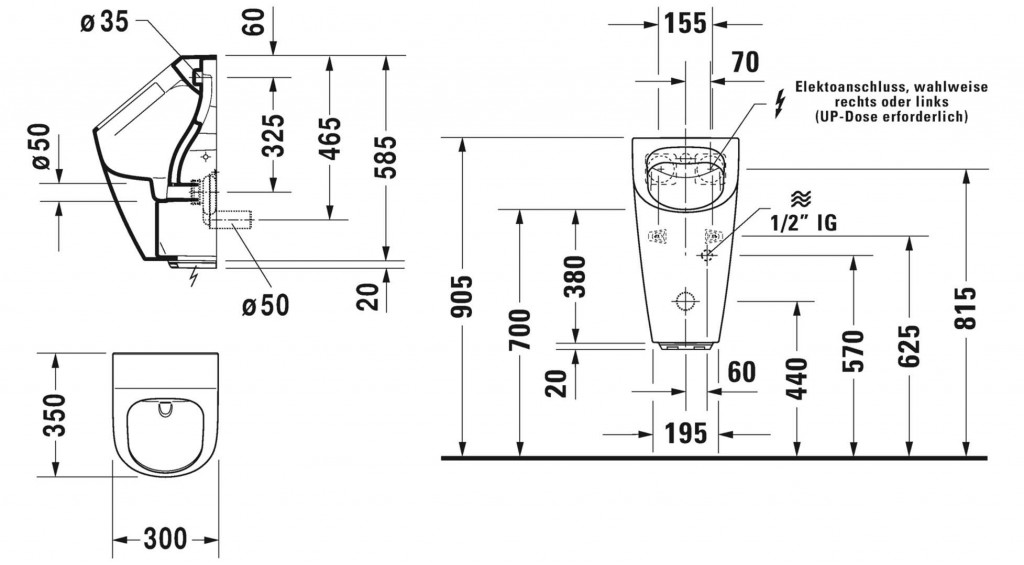 Elektronický odsávací pisoár, bez cieľovej mušky
