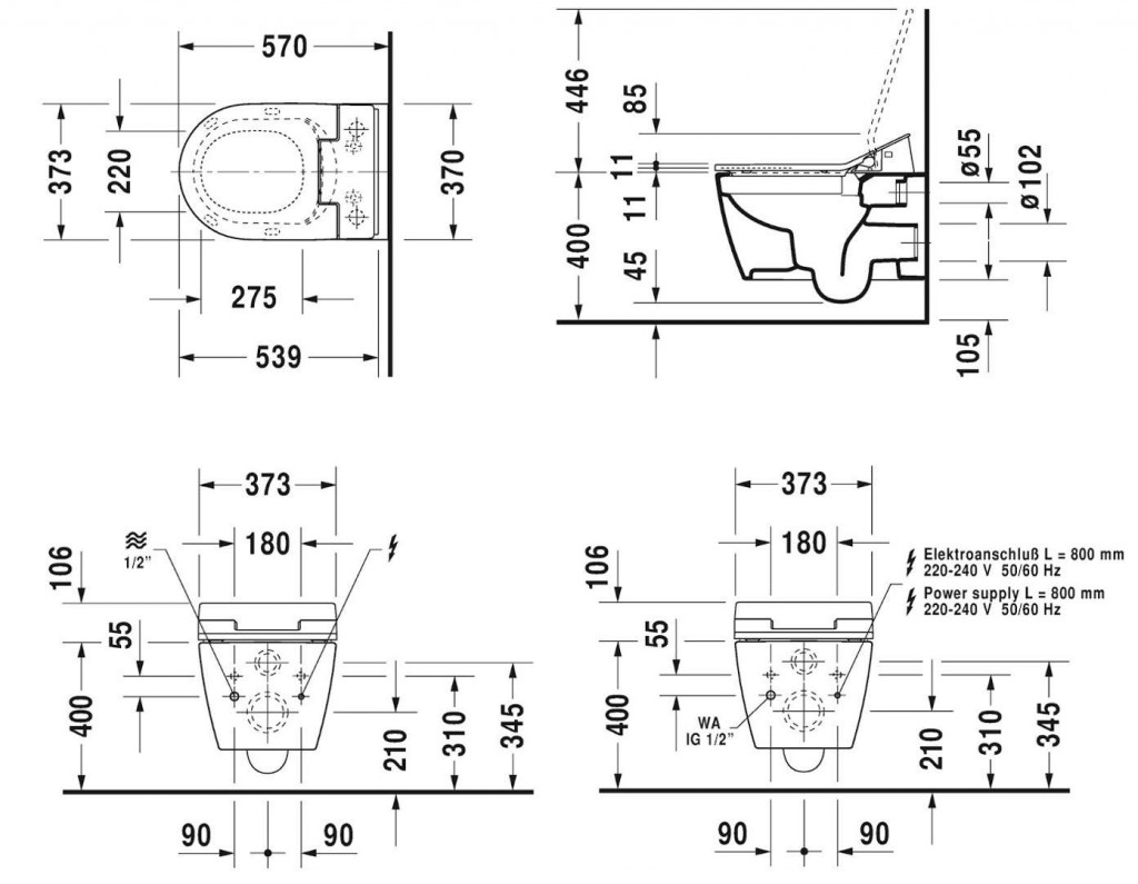 - inštalácie: zavesením na stenu, iba v spojení s WC sedadlom SensoWash®