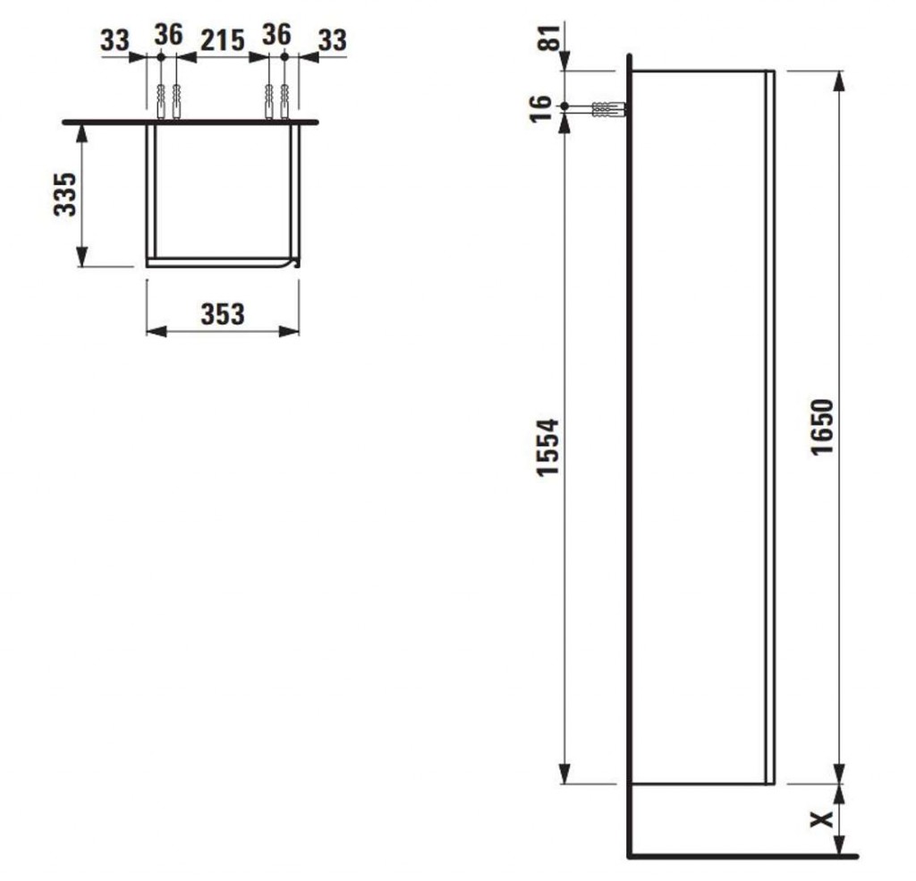 - 1 x dvierka, pánty vľavo