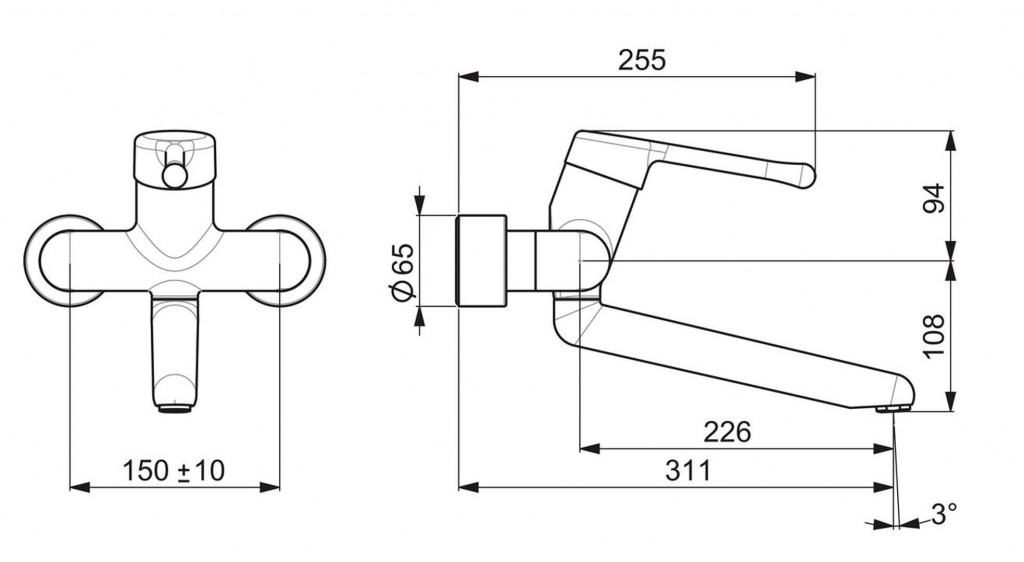 výtok: liaty, otočný o 120 ° (stav dodávky) alebo možnosť aretácie uprostred