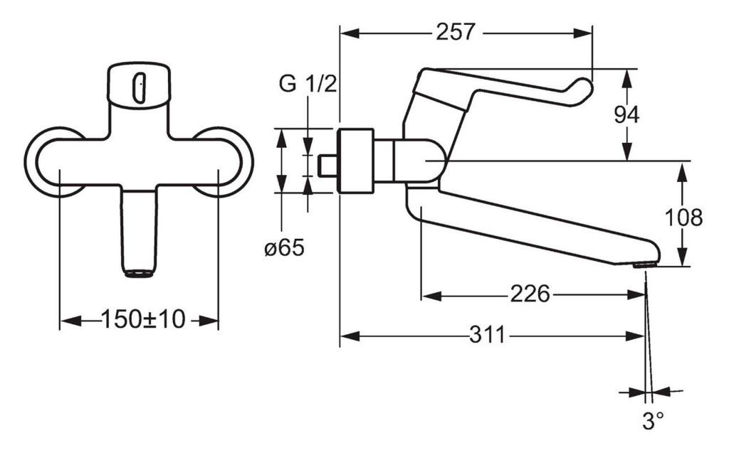 výtok: liaty, otočný o 120 ° (stav dodávky) alebo možnosť aretácie uprostred
