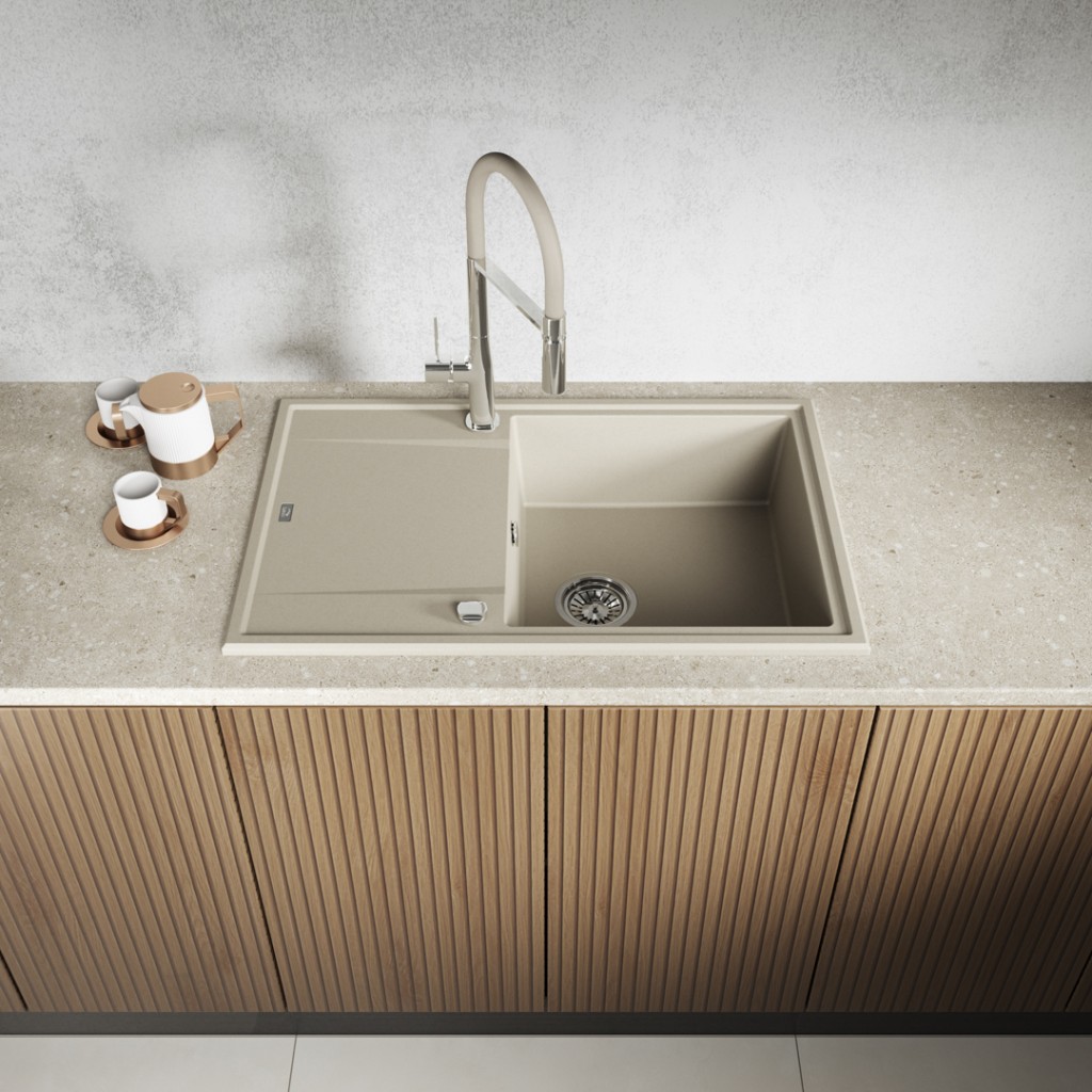 Drez Megalo od Laveo je riešením pre tých, ktorí hľadajú jednodrezový žulový drez so štandardným odkvapkávačom. Obrovskou výhodou je priestranná misa s rozmermi 40x42x17 cm, ktorá ľahko pojme hrnce a panvice. Odkvapkávač umožňuje posúvať neštandardné príslušenstvo okolo drezu, čo zjednodušuje prípravu a upratovanie jedál bez toho, aby to ohrozilo priestor na pracovnej doske, zatiaľ čo okraj okolo drezu chráni pracovnú dosku pred poliatím. K dispozícii je aj dvojdrezový drez s odkvapkávačom. Tento veľkorysý model s rozmermi 116x50x185 cm sa zmestí do skrinky so šírkou 90 cm. Je nepochybne skvelou voľbou do veľkých kuchýň, kde radi varíte a pohostite. Dobrým doplnkom je napríklad batéria s flexibilným alebo výsuvným výtokom, ktorá uľahčuje čistenie drezu. Obojstrannosť oboch modelov umožňuje prispôsobenie – odkvapkávač je možné umiestniť na ľavú alebo pravú stranu. Tento vysoko kvalitný žulový drez sa dodáva s 10-ročnou zárukou a je vyrobený v poľskej továrni. Výrobok je odolný voči škvrnám, zárezom a všetkým každodenným kuchynským prácam. Súprava navyše obsahuje priestorovo úsporný sifón, ktorý uvoľní viac miesta v skrinke pod drezom.