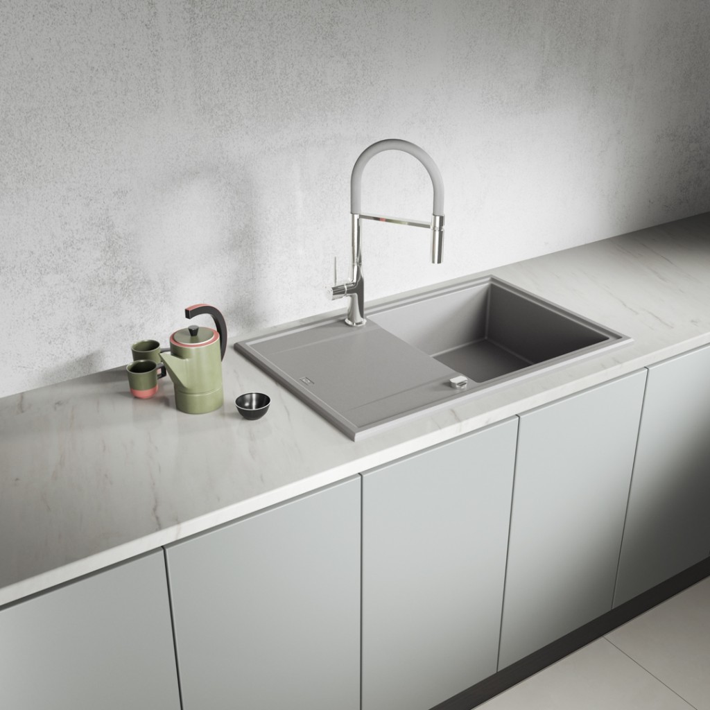 Drez Megalo od Laveo je riešením pre tých, ktorí hľadajú jednodrezový žulový drez so štandardným odkvapkávačom. Obrovskou výhodou je priestranná misa s rozmermi 40x42x17 cm, ktorá ľahko pojme hrnce a panvice. Odkvapkávač umožňuje posúvať neštandardné príslušenstvo okolo drezu, čo zjednodušuje prípravu a upratovanie jedál bez toho, aby to ohrozilo priestor na pracovnej doske, zatiaľ čo okraj okolo drezu chráni pracovnú dosku pred poliatím. K dispozícii je aj dvojdrezový drez s odkvapkávačom. Tento veľkorysý model s rozmermi 116x50x185 cm sa zmestí do skrinky so šírkou 90 cm. Je nepochybne skvelou voľbou do veľkých kuchýň, kde radi varíte a pohostite. Dobrým doplnkom je napríklad batéria s flexibilným alebo výsuvným výtokom, ktorá uľahčuje čistenie drezu. Obojstrannosť oboch modelov umožňuje prispôsobenie – odkvapkávač je možné umiestniť na ľavú alebo pravú stranu. Tento vysoko kvalitný žulový drez sa dodáva s 10-ročnou zárukou a je vyrobený v poľskej továrni. Výrobok je odolný voči škvrnám, zárezom a všetkým každodenným kuchynským prácam. Súprava navyše obsahuje priestorovo úsporný sifón, ktorý uvoľní viac miesta v skrinke pod drezom.