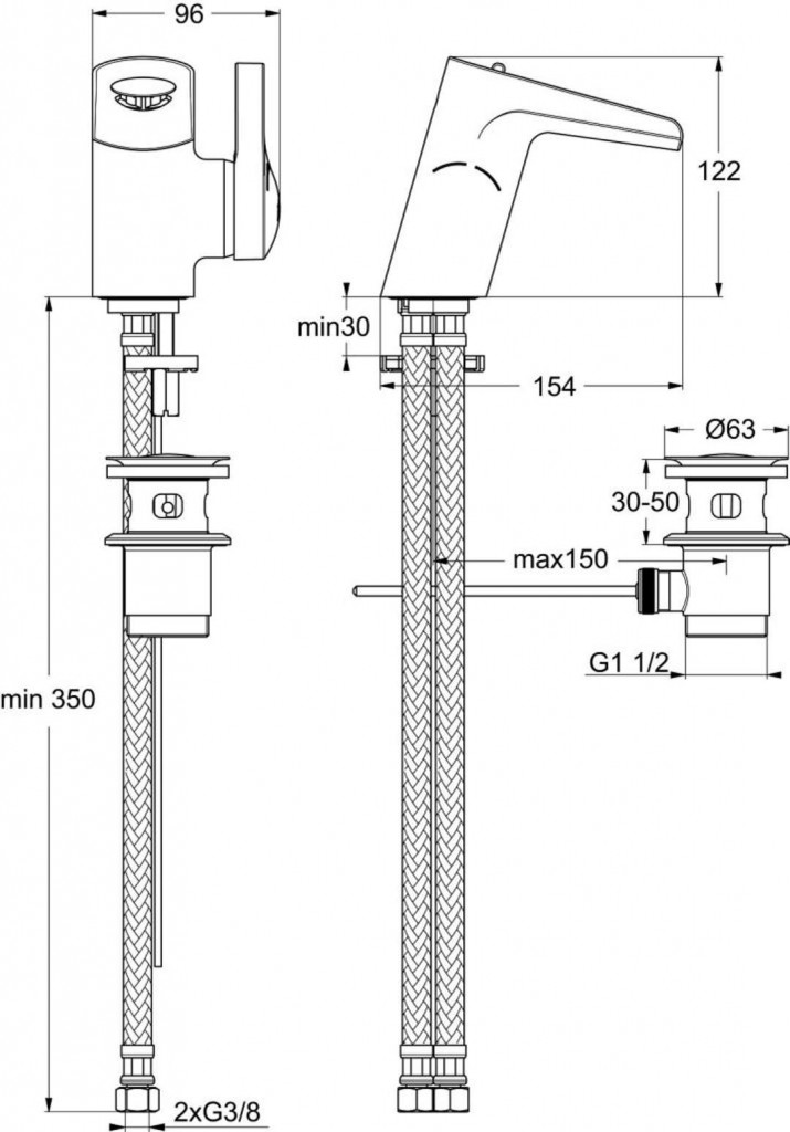 Melange umývadlová batéria s otvoreným vodopádovým prúdom vody, s odtokovou garnitúrou G1 1/4, DN 15.