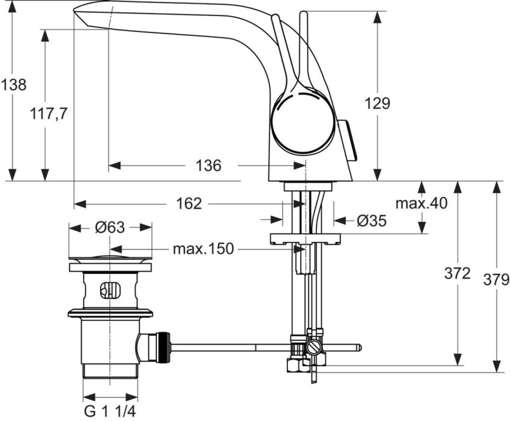 - dĺžka výtoku: 136 mm