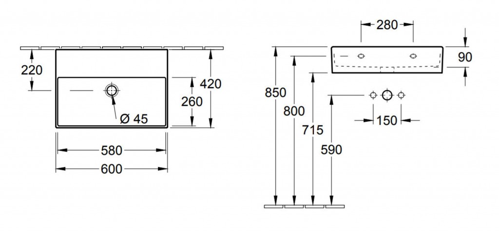 obdĺžnikové umývadlo