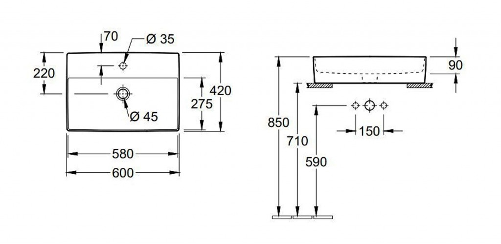 - doporučené pre montáž s minimálnou vzdialenosťou medzi zadnou stenou umývadla a stenou