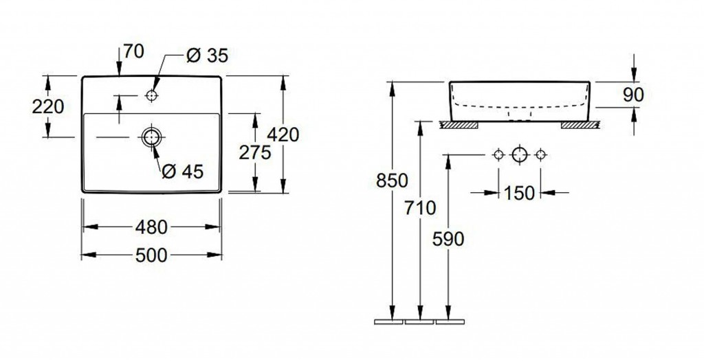 - doporučené pre montáž s minimálnou vzdialenosťou medzi zadnou stenou umývadla a stenou