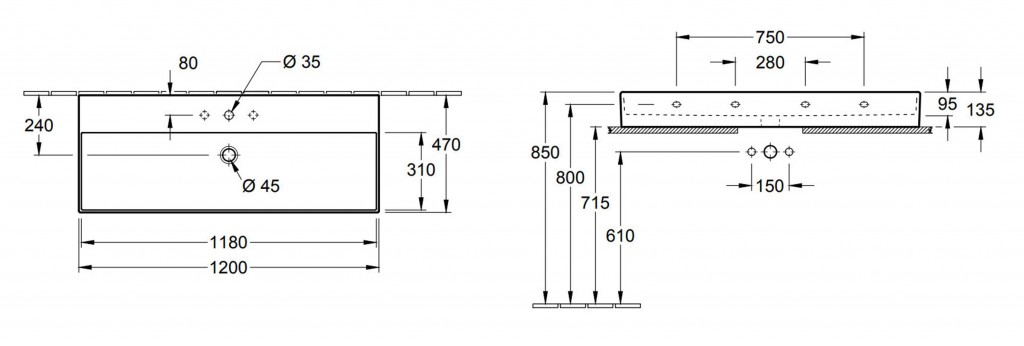 - spodná strana umývadla je brúsená
