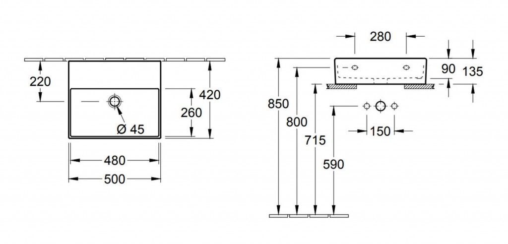 obdĺžnikové umývadlo