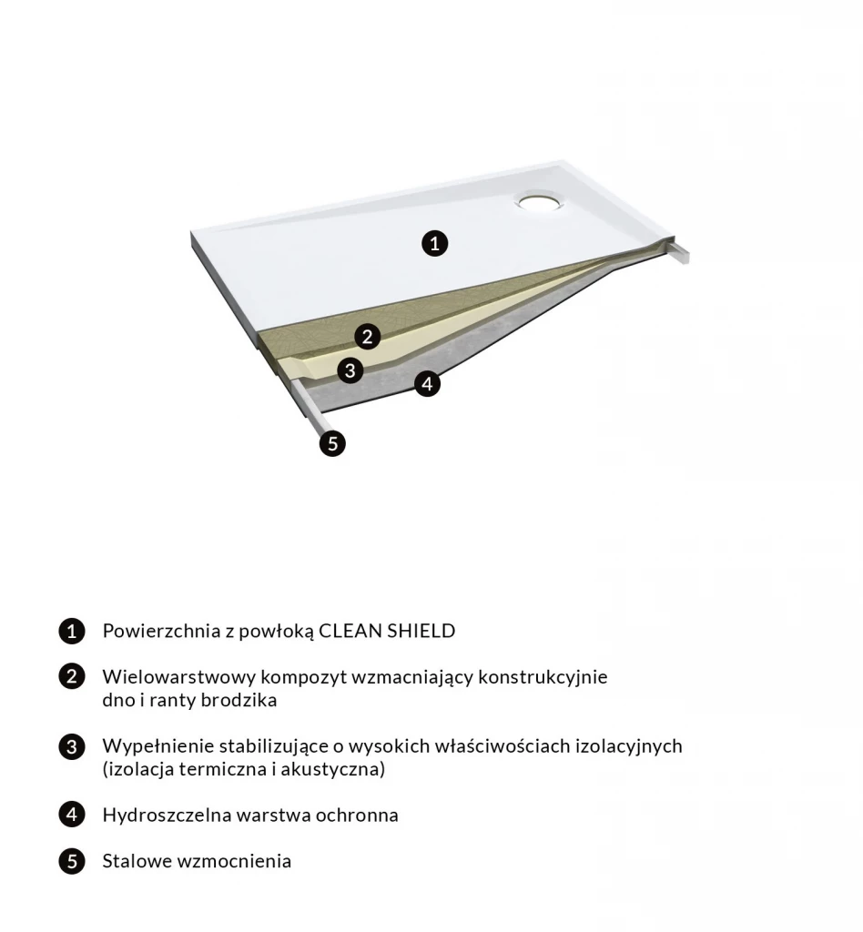 Akrylátová sprchová vanička OMNIRES MERTON je vyrobená z vysoko odolných vrstiev polymérov a minerálnych zložiek s penovými zmesami PU+. Jedná sa o najodolnejší kompozit pre kúpeľňové produkty, ktorý poskytuje vynikajúcu tepelnú izoláciu (udržuje teplo sprchovej vaničky) integrovaný tvar vďaka výplňovému a stabilizačnému systému a špeciálnym kovovým výstuhám. Je odolná voči vlhkosti a plesniam. Vďaka systému EasyMount nie je nutné k inštalácii sprchovej vaničky vŕtať.