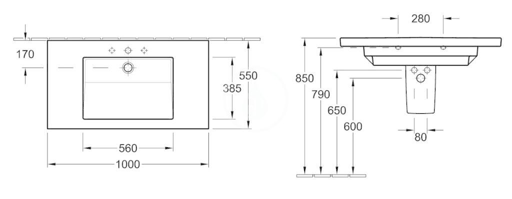 s plochou pre trojotvorovú armatúru, prostredný otvor pre armatúru prerazený