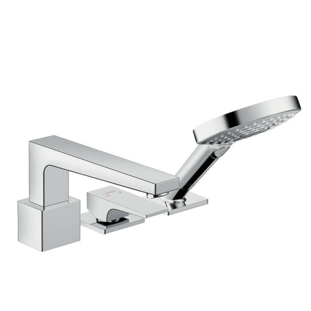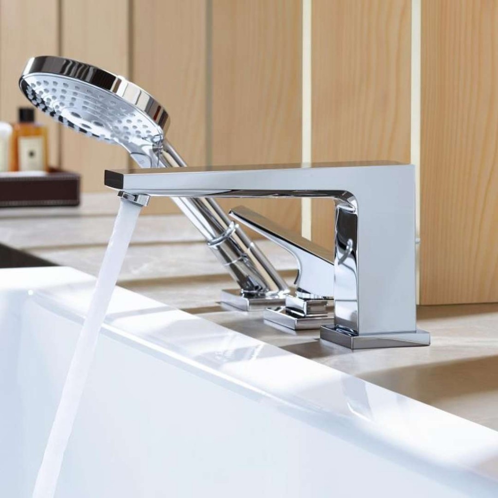 Trojotvorová páková batéria na okraj vane s Packová rukoväťou.