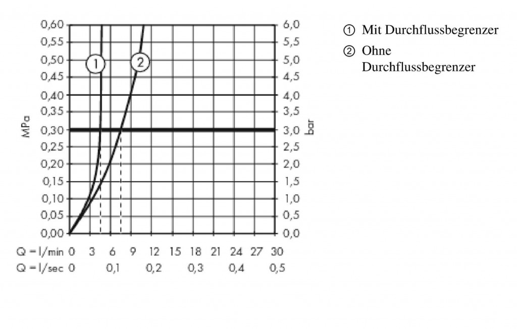 - prietok pri 0,3 MPa: 5 l / min