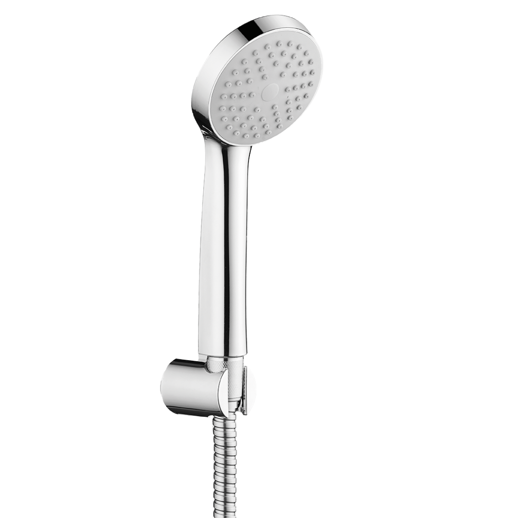 Sprchová sada Meva s nástenným držiakom, ručnou sprchou s jednou funkciou a 150cm dlhou hadicou je elegantným a praktickým doplnkom, ktorý skvele zapadne do každej modernej kúpeľne. Jej čistý, minimalistický dizajn harmonicky ladí s rôznymi štýlmi interiéru – od jednoduchých po luxusnejšie priestory.