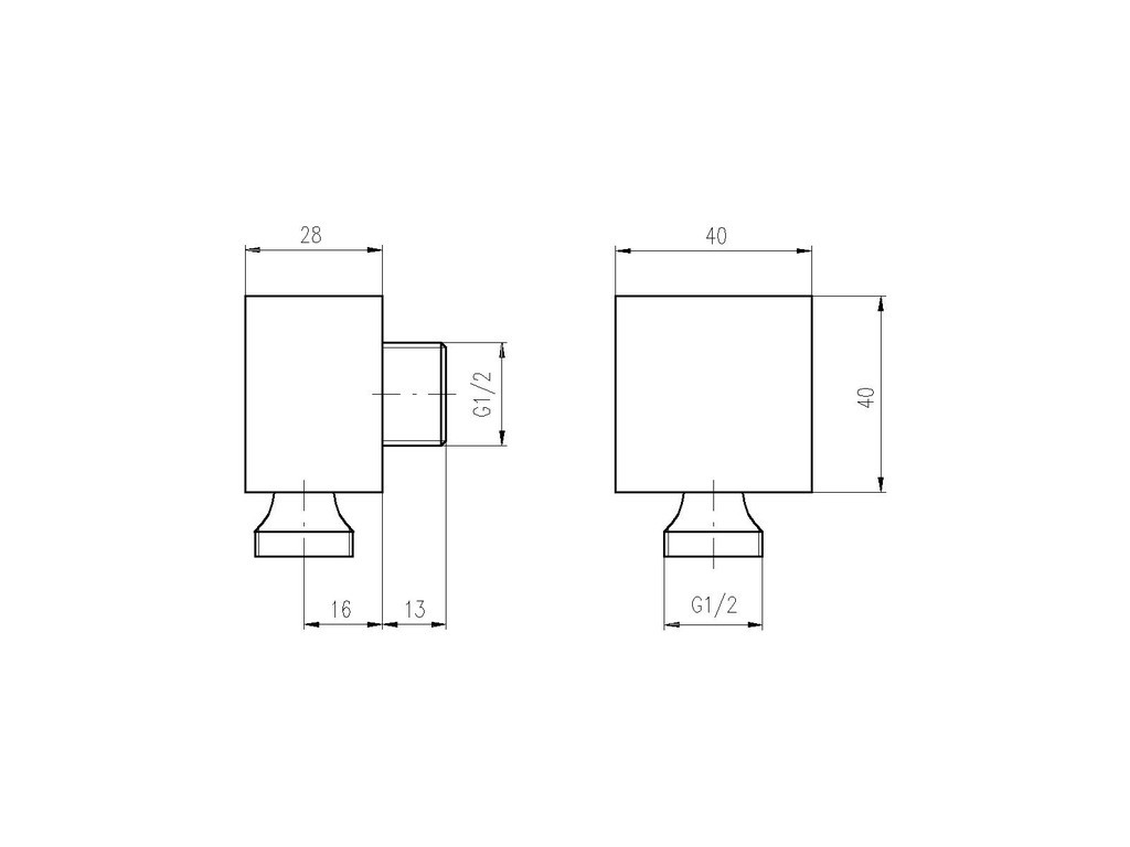 Medzikus na pripojenie hadice k vaňové / sprchové vstavanej batériu - štvorec.