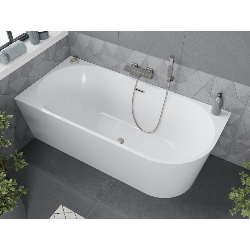 Mexen Mia je elegantná voľne stojaca vaňa s rozmermi 160 x 75 cm, ktorá prináša luxus do každej kúpeľne. Vyrobené z vysoko kvalitného sanitárneho akrylátu, je nielen estetické, ale aj odolné proti matovaniu a UV žiareniu. Jeho biela farba a povrch z kartáčovaného niklu dodávajú modernosť a rohová inštalácia zlepšuje využitie priestoru. Súprava obsahuje sifón a zátku click-clack, vďaka čomu je praktickým riešením do každej kúpeľne.