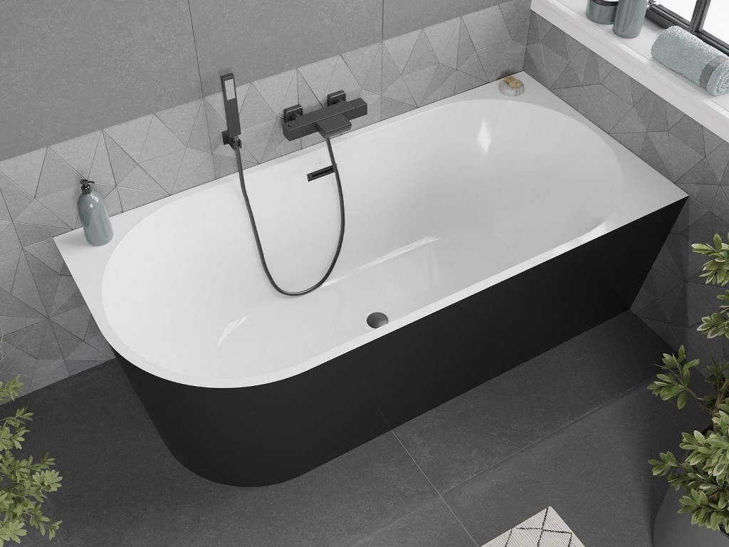 Voľne stojaca rohová vaňa MIA je určená na umiestnenie k stene. Je to často luxusný a dizajnový prvok, ktorý prináša do kúpeľne elegantný a moderný vzhľad. Voľne stojace vane sú často spájané s luxusnými kúpeľňami a ponúkajú jedinečný zážitok z kúpania.