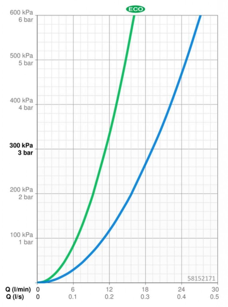 - úsporný prietok 11.4 l/min (pri tlaku 3 bar)