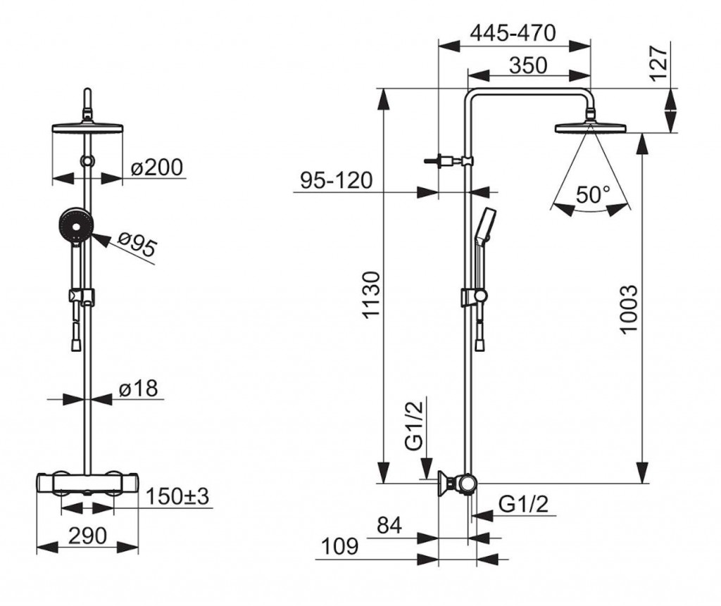 - termostatická nástenná sprchová batéria, rozteč 150 mm