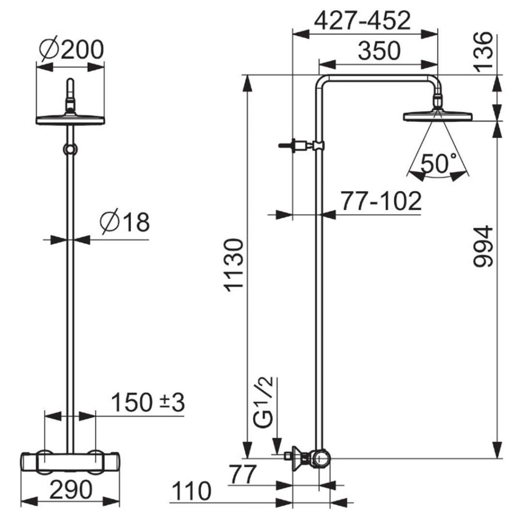 - rozstup 150±15 mm
