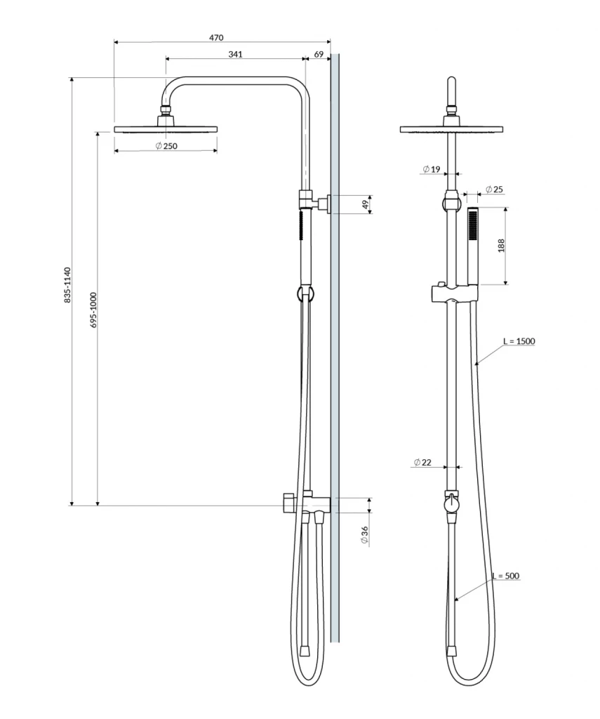 - sprchový stĺp (UN10041CR) s prepínačom a ramenom na inštaláciu dažďovej sprchy