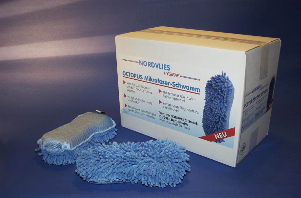 Mikrofázová huba OCTOPUS 88008 - ideálna na umývanie a leštenie áut, hladká strana leští, strana so strapcami umýva, veľká sacia schopnosť
