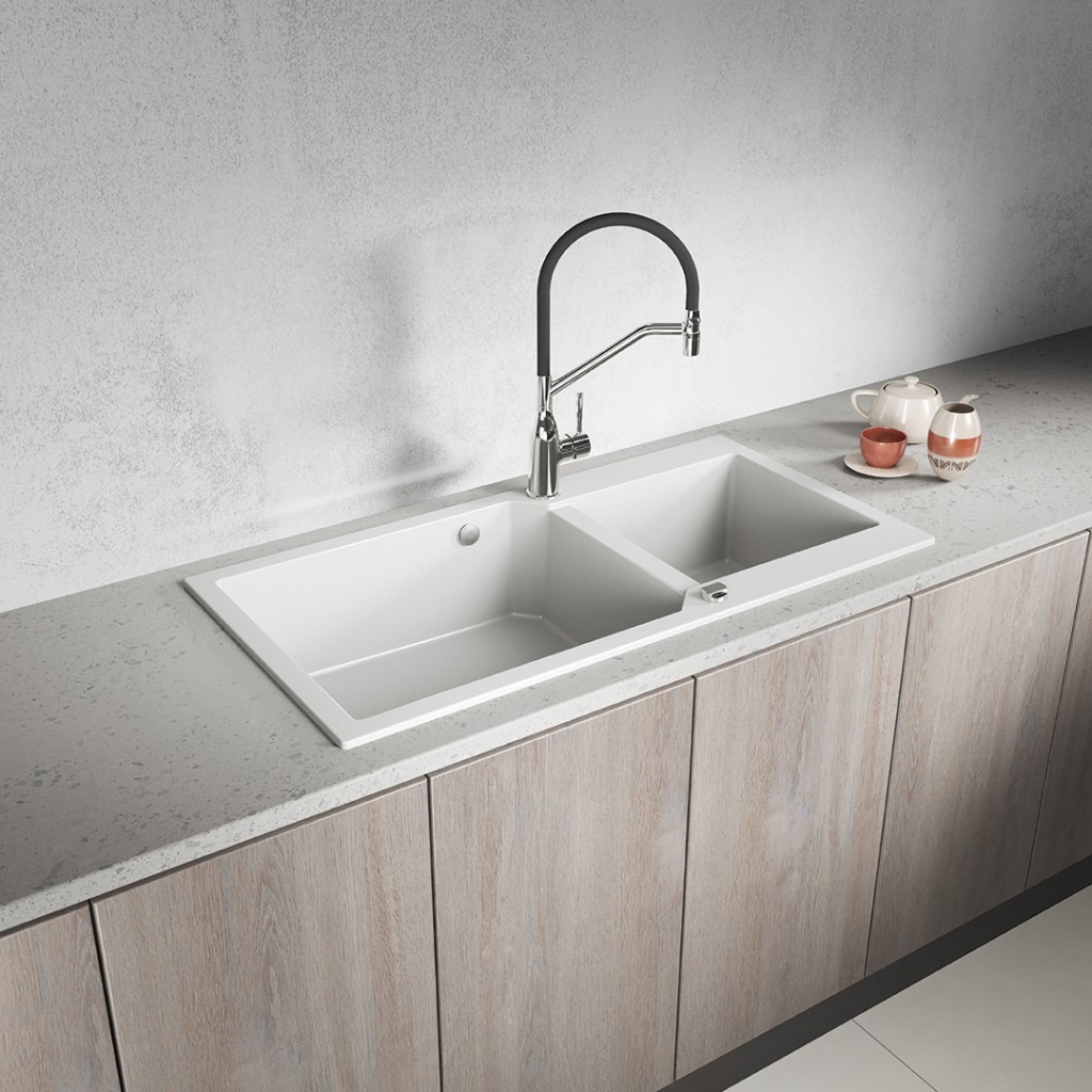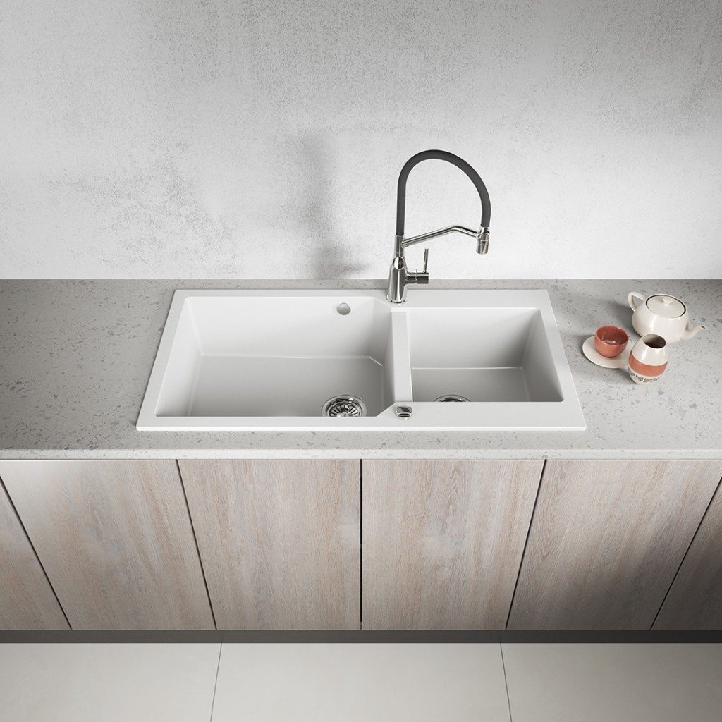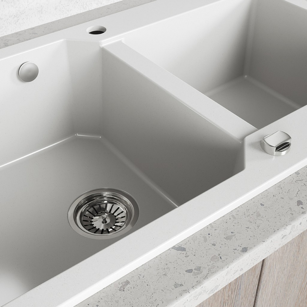 Rad granitových drezov Milos je perfektným riešením pre modernú kuchyňu, ktoré kombinuje eleganciu s výnimočnou funkčnosťou. Tieto modely ponúkajú dve hlboké drezy – väčšie je ideálne na umývanie veľkých hrncov a plechov na pečenie, zatiaľ čo menšie je ideálne na oplachovanie zeleniny a ovocia. Drezy Milos poskytujú pohodlie a efektivitu pri každodenných kuchynských úkonoch. Priestorovo úsporný sifón umožňuje lepšie využitie priestoru pod drezom, čo je pre organizáciu kuchyne kľúčové. Drezy sú obojstranné, čo umožňuje flexibilnú inštaláciu tak, aby sa prispôsobili usporiadaniu vašej kuchyne. Sú vyrobené z granity, sú vysoko odolné voči poškriabaniu, škvrnám a vysokým teplotám, čo zaručuje dlhodobý a esteticky príjemný vzhľad aj pri intenzívnom používaní. Elegantný granitový dizajn a široká škála farieb robia z drezov Milos perfektnú voľbu pre každú modernú kuchyňu a dodávajú jej štýl a funkčnosť. Výberom radu Milos investujete do odolného a praktického kusu vybavenia, ktorý splní všetky kuchynské výzvy.