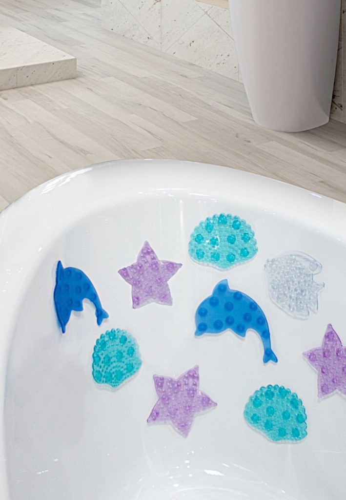 Súprava 6 mini podložiek ideálna pre deti. Malé fialové podložky v tvare hviezdice spríjemnia kúpeľ vášho bábätka a umiestnené na dne vane ochránia pred pošmyknutím. Majú prísavky, ktoré ich pripevňujú k zemi. Balenie obsahuje 6 kusov.