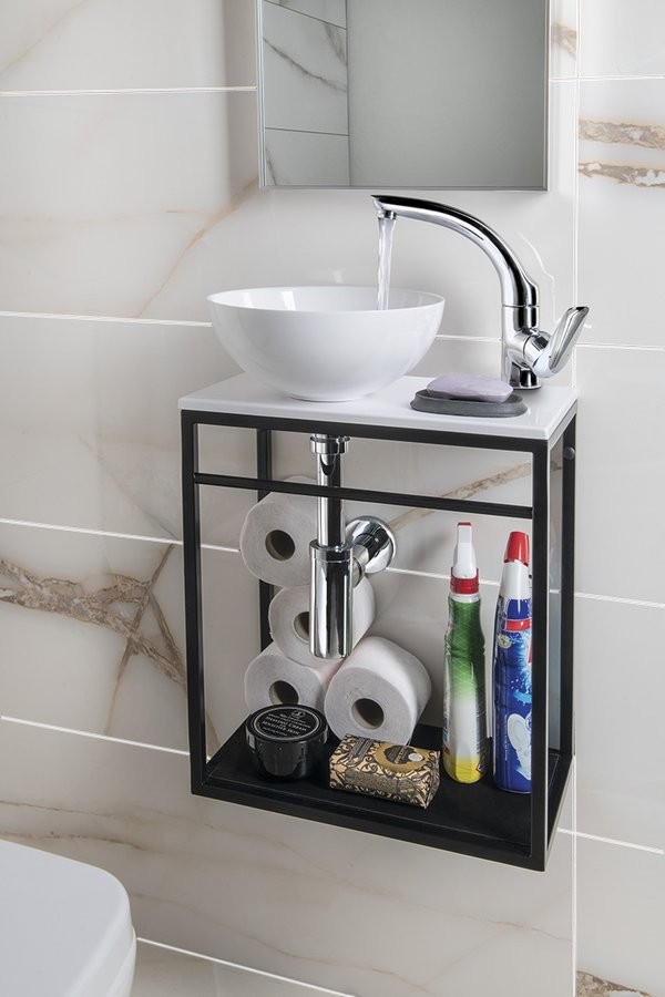 SAPHO - MINOR doska pod umývadlo 40x22,5cm, batéria vpravo, liaty mramor, biela (MR405)