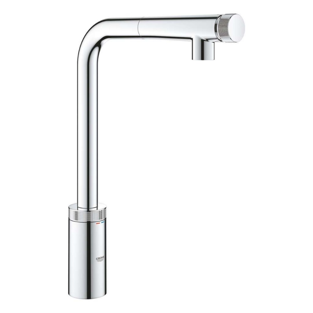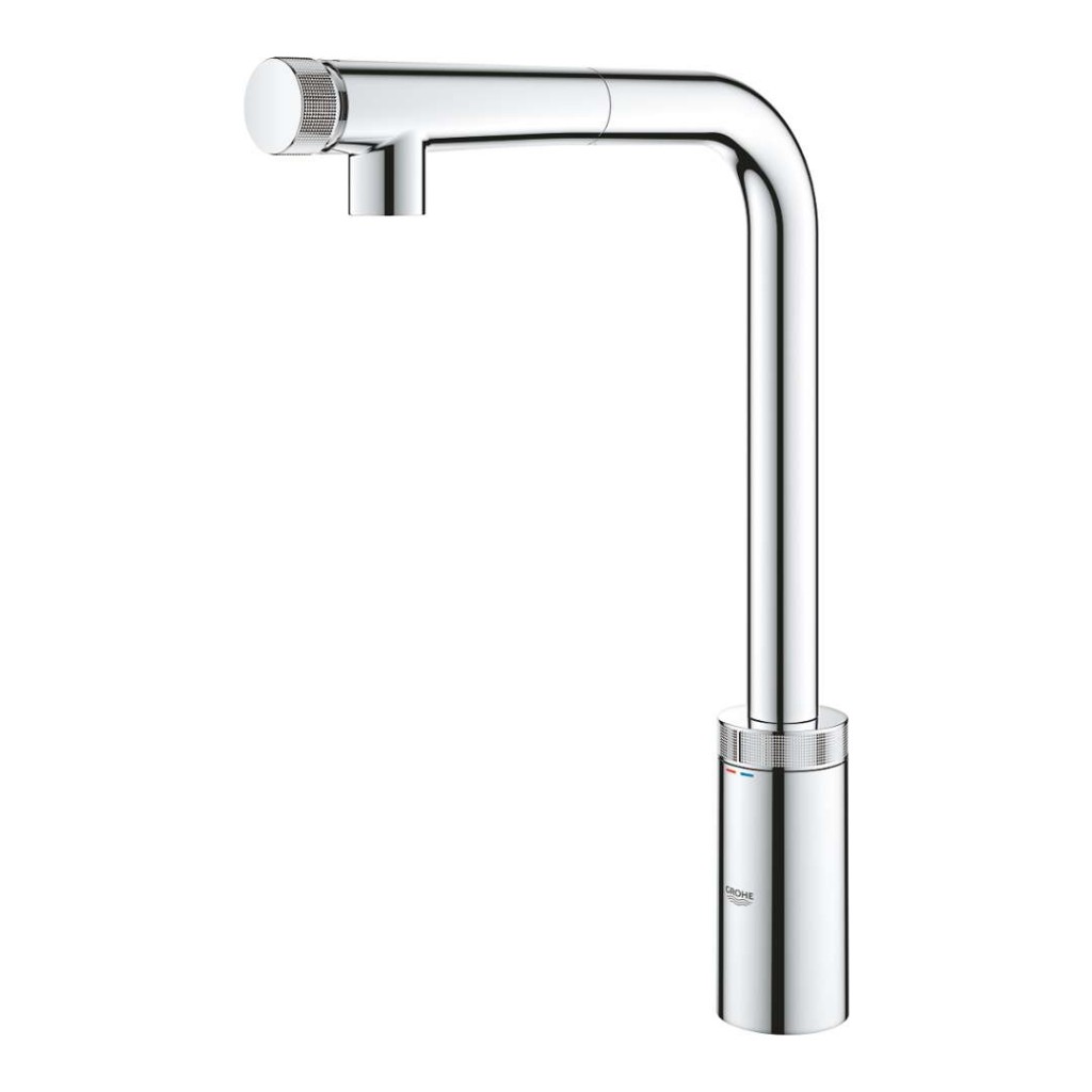Batérie Minta SmartControl umožňuje reguláciu prúdu vody a jej teploty jednou rukou. Vysoká výpust uľahčí plnenie veľkých hrncov a vyťahovacie spŕška zvyšuje dosah použitia batérie. Vďaka výkonným magnetom sa tiež sprchová hlavica po použití automaticky a plynule zasunie späť do svojej pôvodnej polohy. Táto drezová batérie tiež disponuje otočným ventilom pre reguláciu objemu vody.