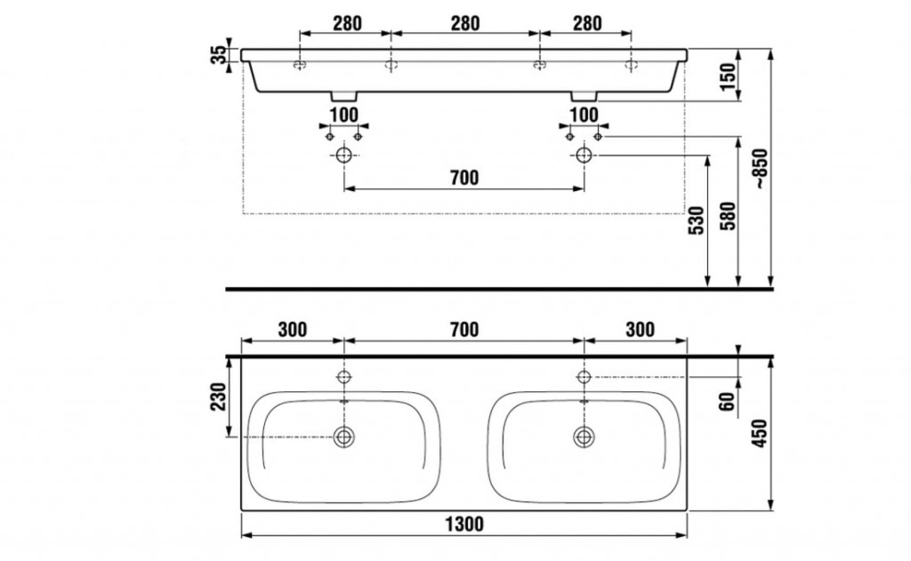 Dvojumývadlo s prepadom, 2 otvory pre batériu